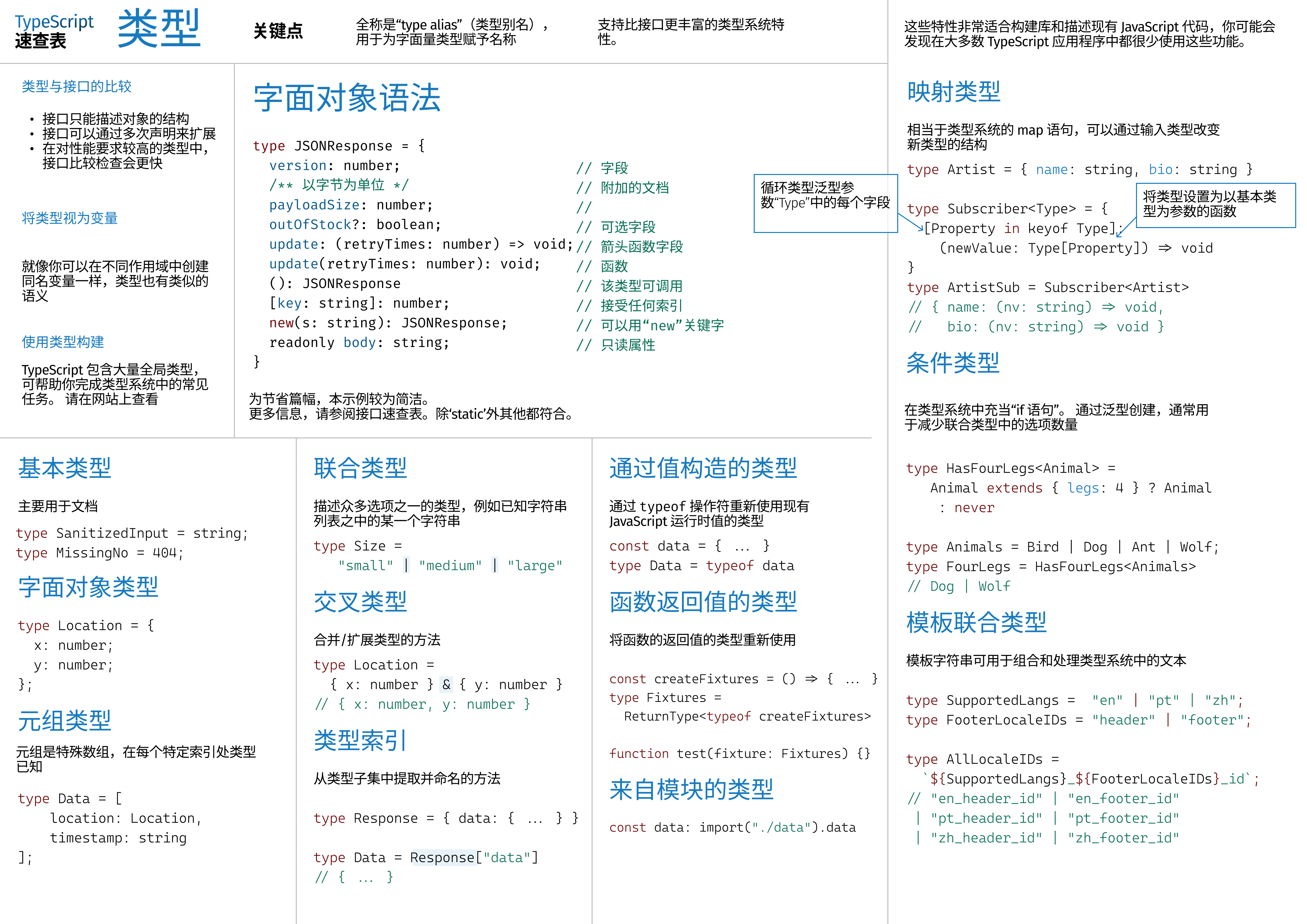 Downloadable syntax reference pages for different parts of everyday TypeScript code.